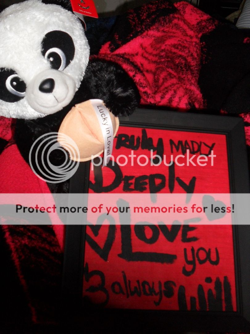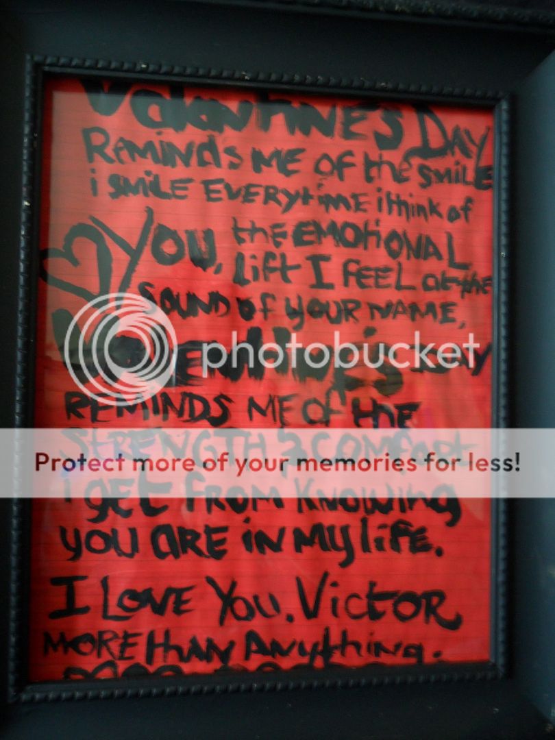 Well, Last Tuesday,...i forgot the date..but last Tuesday i went to the Zoo! it was absolutely so much fun, like you will not believe. I enjoyed seeing all my favorite critters & i got to see one that i missed for quite a while, the sea otter! my favorite little guys. I did bring my camera but i forgot the cord so you guys are still guna have to wait till i bring both cord & camera, but i did receive the cord in the mail the other day so i'm pretty happy about that. Well, I did do this small but pretty surprise [in my eyes] gift for valentine's day for the love of my life, Victor. He's the most important human being in the world to me including my parents & my brothers. don't forget little Mia!